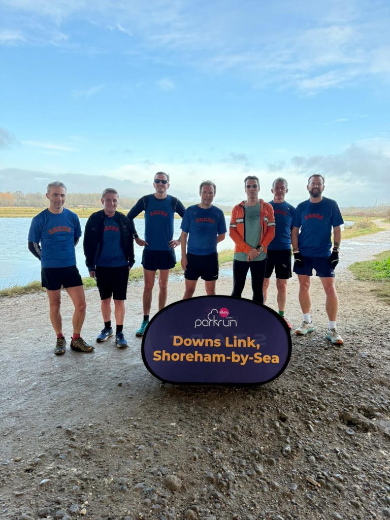 The latest stop on the Arena parkrun tour took place on Saturday with a group of seven members taking on the recently launched Downs Link, Shoreham-by-Sea parkrun. You can see them posing close to the start line below.